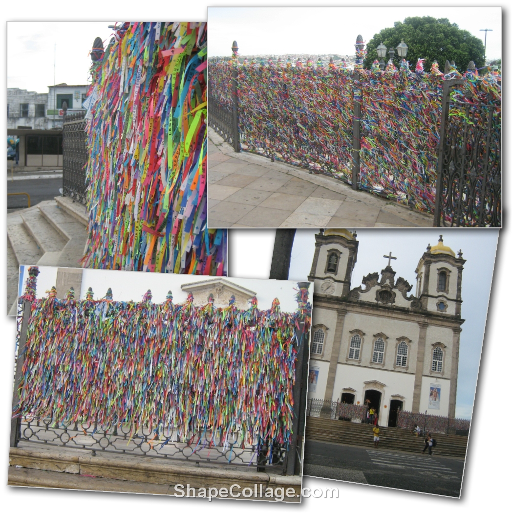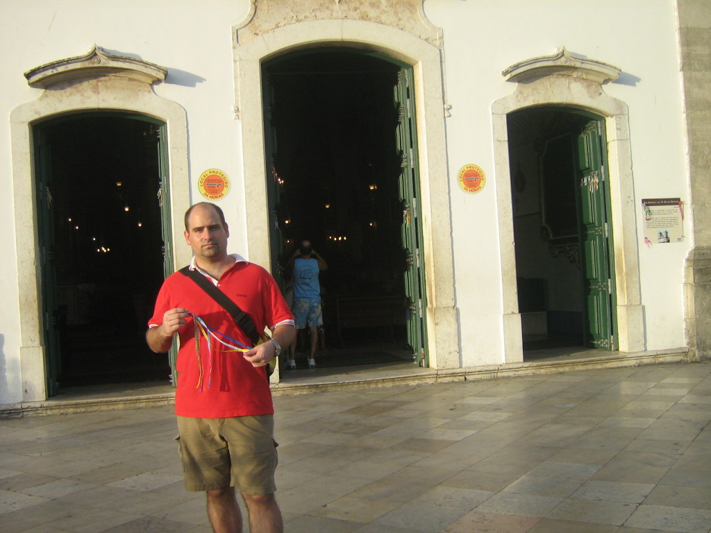 When you approach the church the first thing that catches your attention are the thousands of little ribbons (fitas) of multitude colours attached to the entrance. Beforehand you have been offered those ribbons everywhere around the city. Prayers come to Bonfim and together with their prayer they take one of the little ribbons, and attach it to themselves (or the entrance, the benches or the candles in the church…) making three knots. Supposedly they are granted one wish for each of the knots, and they shall not remove the ribbon until the wishes come true.