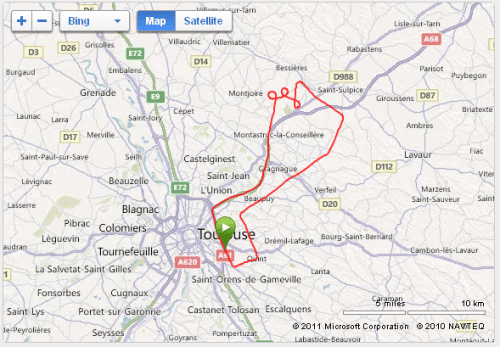 For this second flight I decided to bring my Garmin GPS, which normally I use for sport activities, in order to record our flight, so that my colleague and I could better know where we had been flying. This will hopefully help us in getting to know better the Toulouse area from the air and with the navigation in the near future.