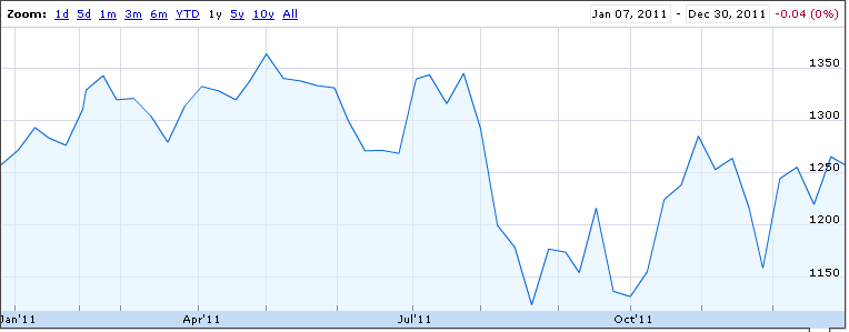 I went further and compared the -0.69% to 2011 numbers, in this case only with S&P 500.