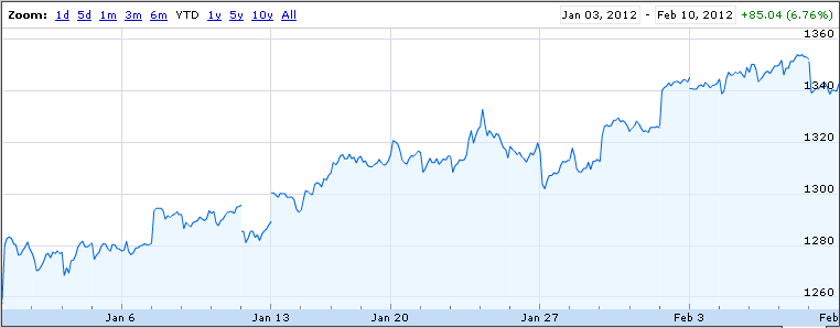 I didn’t feel that the day had been especially bad regarding stock markets. Both the Dow Jones and S&P 500 fell -0.69%, which indeed had been the worst day so far in 2012, but so far both indices had returned over 7.5% and 5.5% in the first 5 weeks of the year. So, I guess that what wasn’t the norm was the positive trend with only about 3-4 bad days so far.
