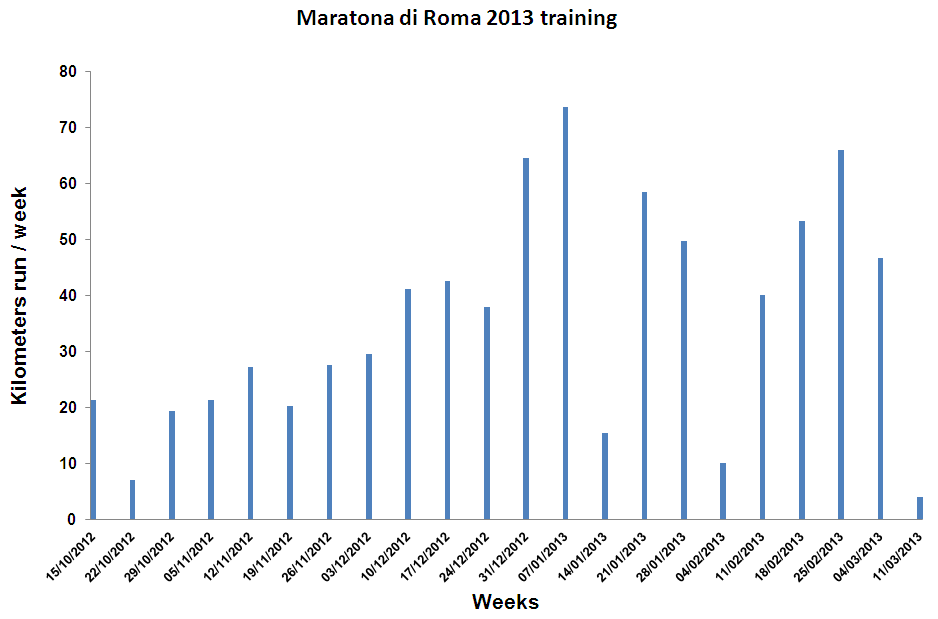 Since running Berlin marathon last September 30th, I only stopped for a couple of weeks and swiftly started running again. Even if I started a bit late to pick up with the number of miles run per week (from mid December instead of mid November) I have amounted almost 800km in these last months, including:
