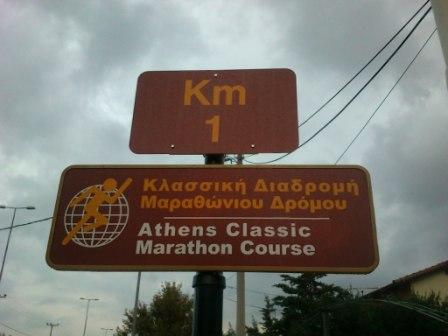 Milestone of the km 1 of the Athens Classic Marathon Course.