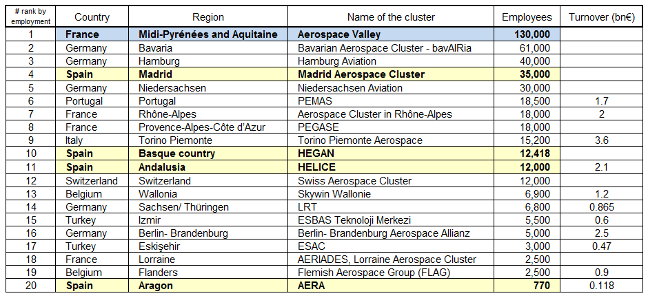 Ranking of EACP clusters by employment. (Source of the data: EACP brochure 2015).