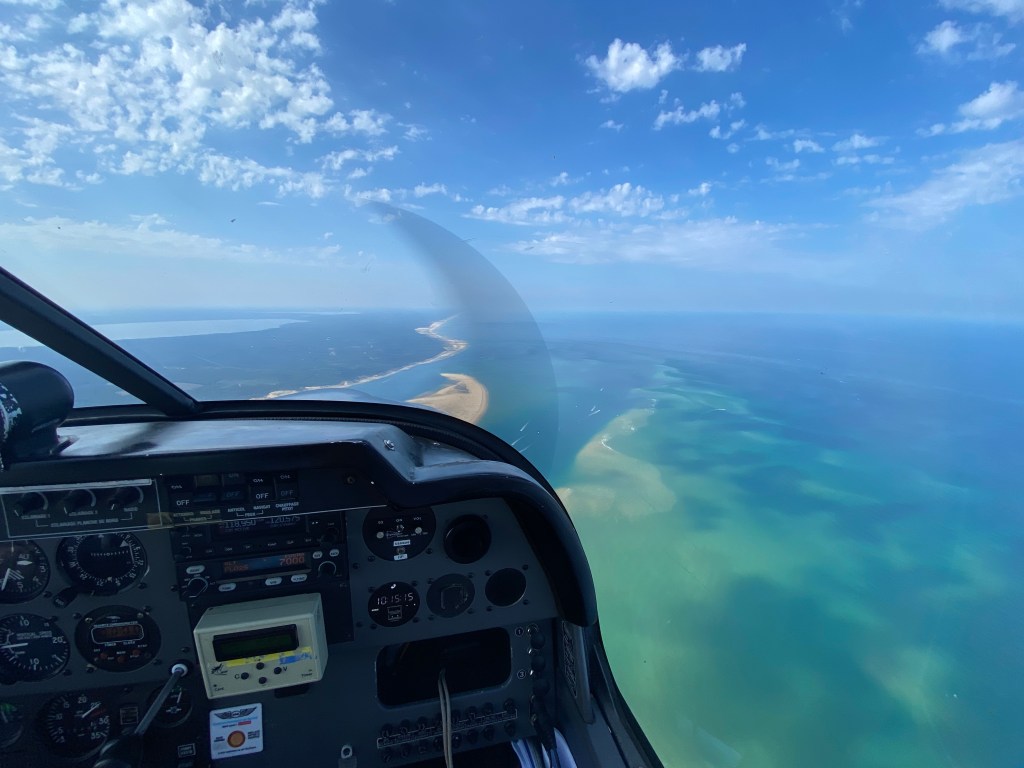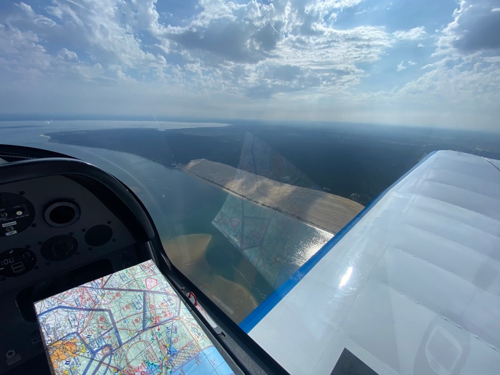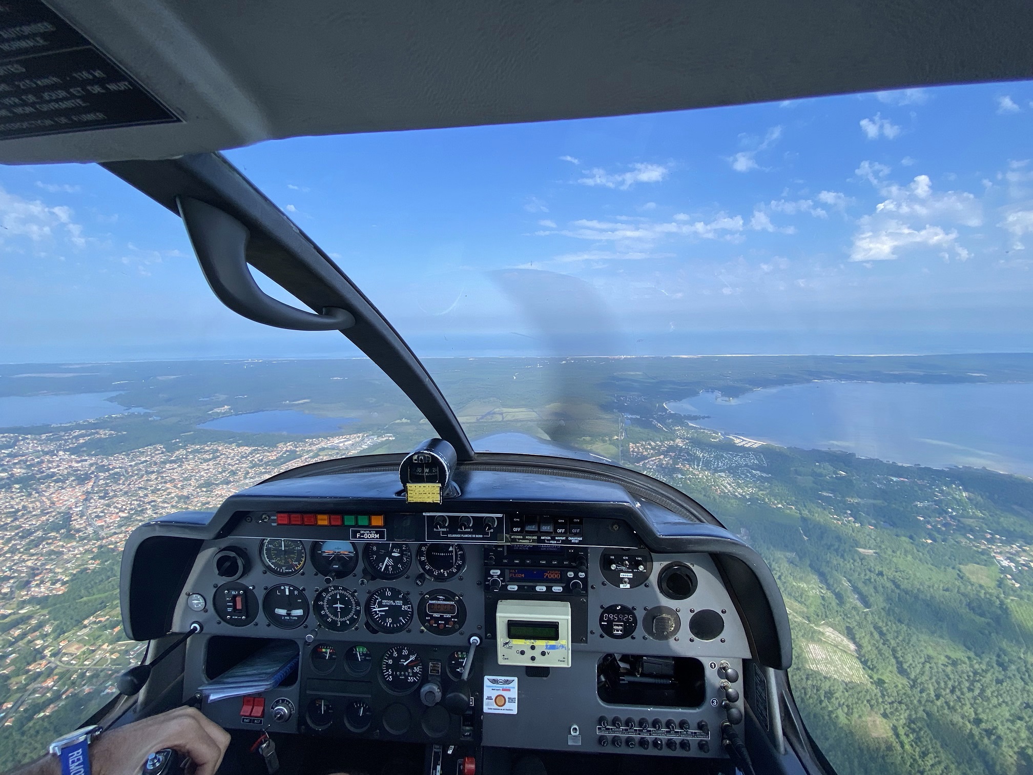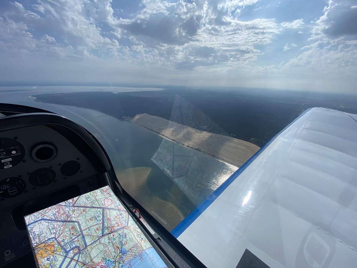 Flying around the Dune of Pilat and Arcachon bay was quite busy. We flew in the area at an altitude of ~2,500ft and below us, at around 1,000ft, we saw quite a few airplanes flying by, not all in the same radio frequency. Thus, in days of good weather that is something to watch out.