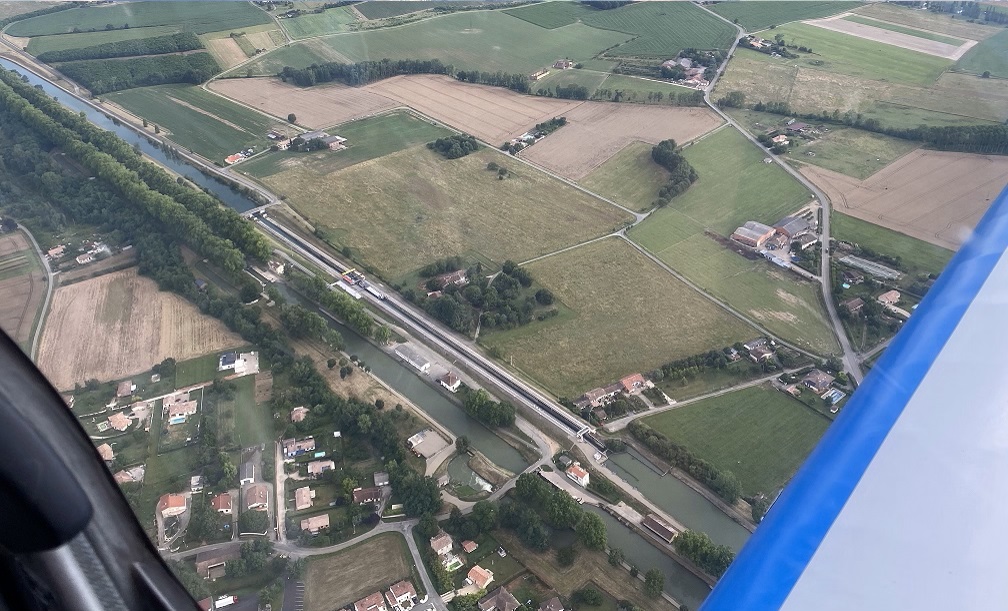We took the opportunity of the excursion to overfly other interesting landmarks such as the water slope of Montech, the pont-canal of Moissac, the Dune of Pilat and Cap Ferret by the bay of Arcachon.