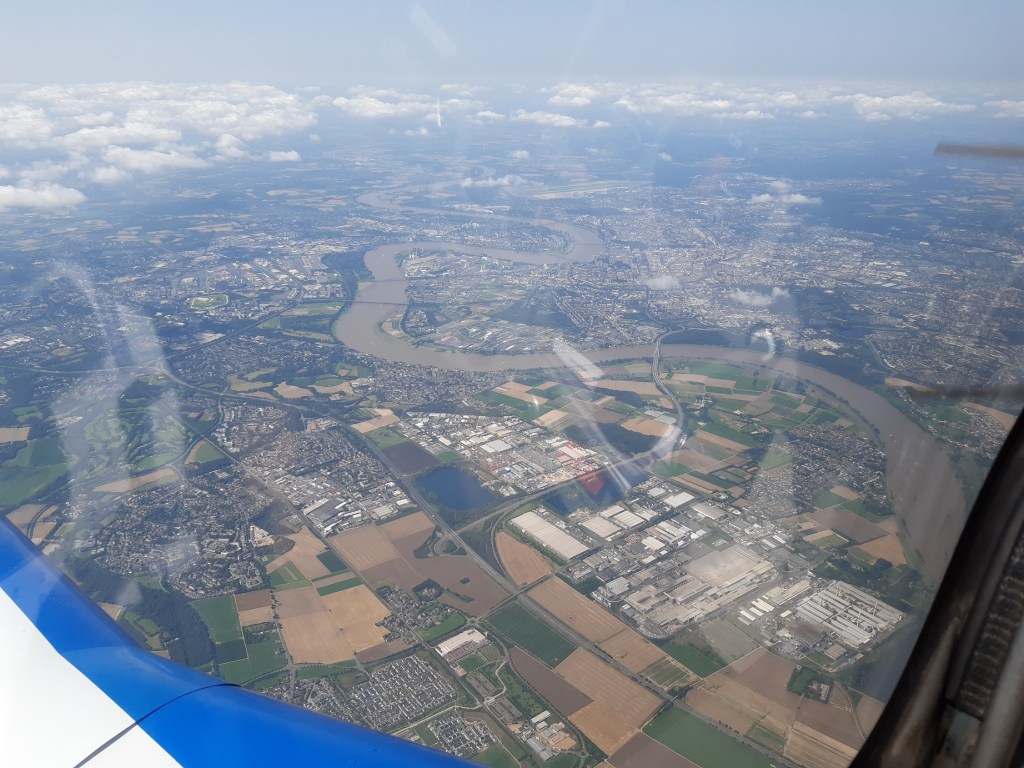We flew at 4,500ft until Nordholz and then climbed to FL065 to have better visibility of the cities ahead of us. Later, ahead of reaching the class C spaces around Düsseldorf and Cologne the ATC gave us clearance and asked us to climb to FL070 to stay in VMC conditions, as around Cologne the clouds became more numerous and were quite abundant by the time we overflew Luxembourg.