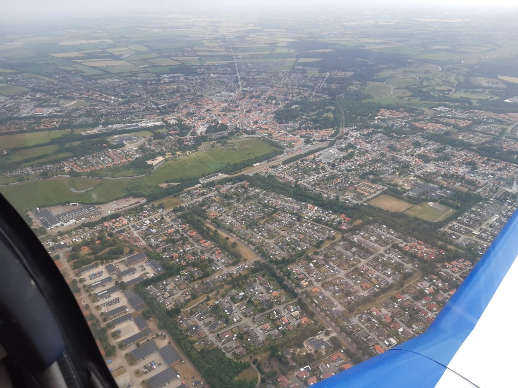 Shortly after we took off again from Kjeller, overflew Rygge and continued our flight to the South very close to the separation between the Norwegian and the Swedish FIR, while having the Swedish coast in sight for most of the time until we could see from afar the thin peninsula of Skagen in Denmark. This time we flew closer to the East of Jutland to avoid the storms that seemed to be more to the West. We left Aalborg to the West, then Billund and the ATC of Skrydstrup helped us in flying through some local cumulonimbus and showers, until we were finally in sight of Tønder.