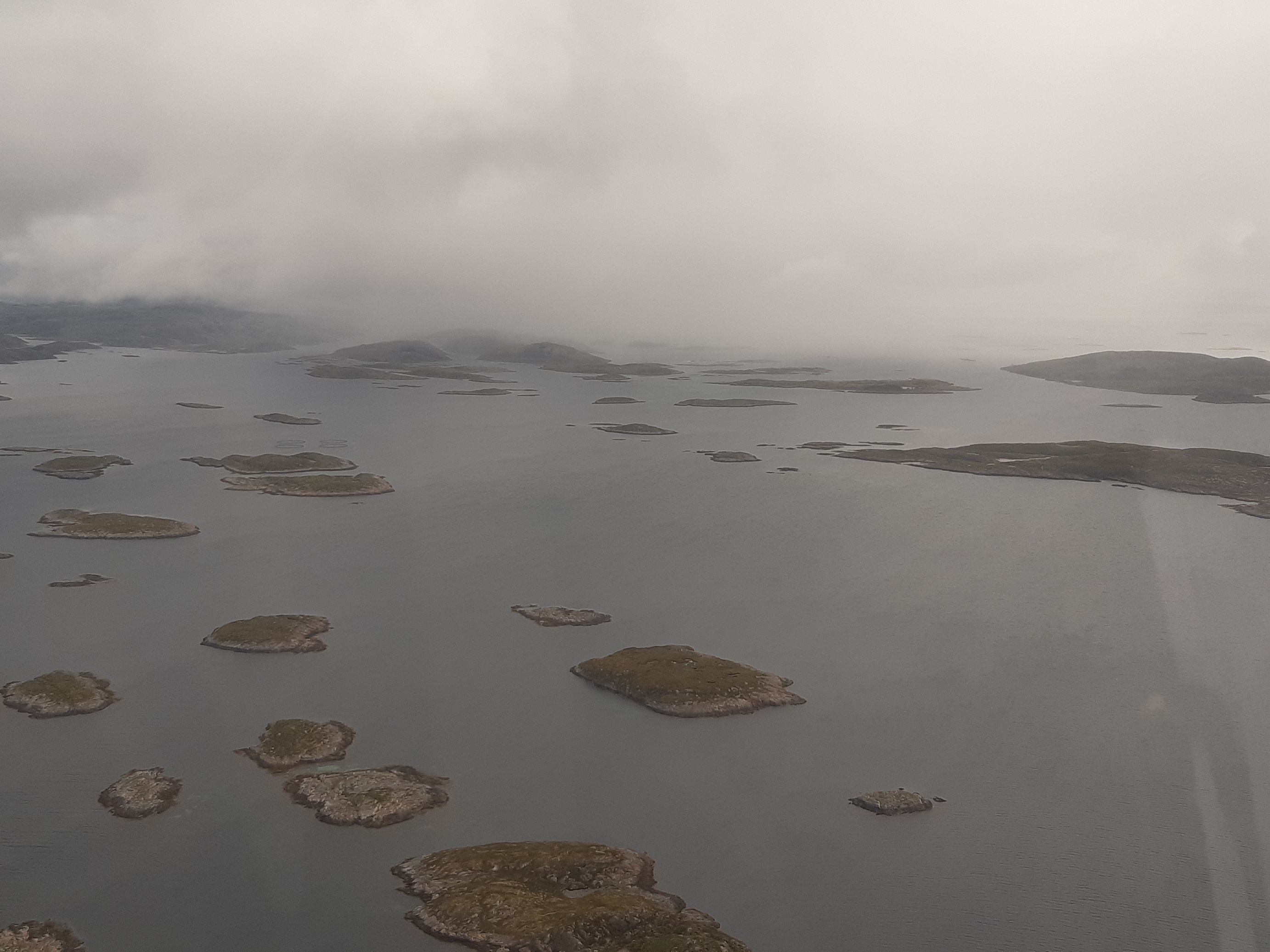 We flew past Bodø and exchanged some messages with the other airplanes about plans in Trondheim after refueling at Brønnøy only to find that some 40nm South of Bodø visibility was very bad and the ceiling very low. The difference now was that the area is full of small rocky islands, so at that point we made another U-turn and flew back to Bodø. The visibility at the airport was very low as well so we waited holding flying in circles at some 600ft for a few minutes about 20nm South of the airport until the controller offered to guide us to the airport under Special VFR.