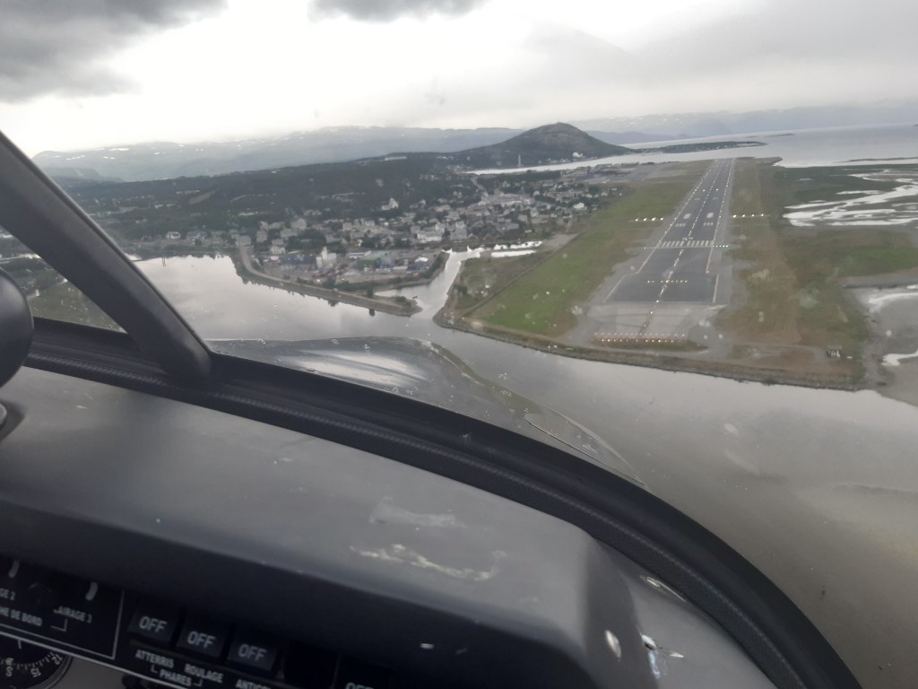 In the first flight of the day we tried to reach Brønnøy overflying some fjords in the interior and flying over Namsos but before reaching that point there was no visibility and the F-PANI and us had to take a U-turn back to the fjord of Trondheim and get to the coastline overflying Orland airport. In flight we learnt that a NOTAM had been published informing that there was no Avgas that day at Brønnøy. Despite of that we landed there, which wasn’t easy as just when arriving there were some showers, so we had to hold first at the South and then changed our plan and approached the airport from the North West. At the airport we studied again the weather to the next airport where we could refuel, Bodø, a flight of just over an hour.
