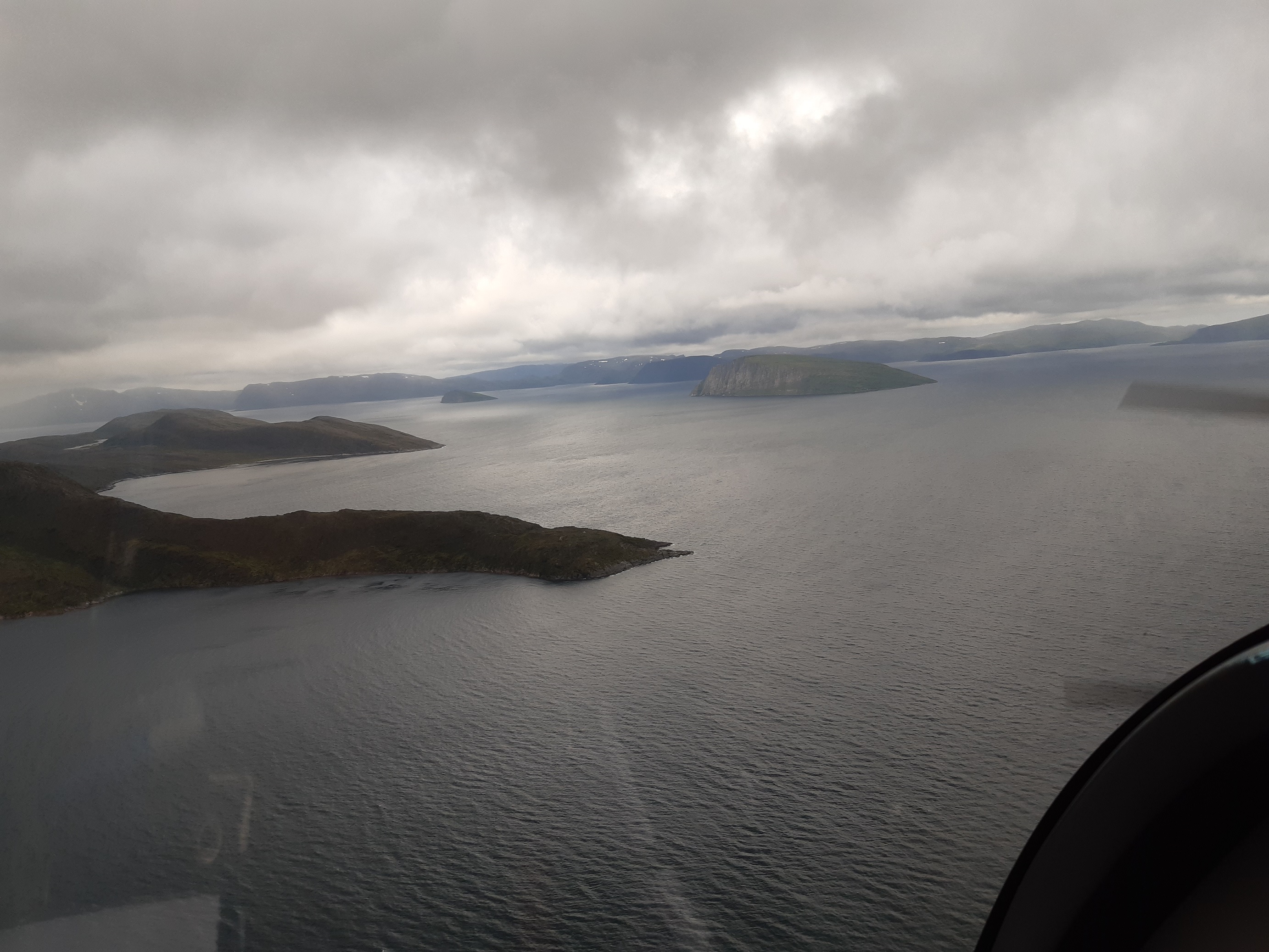 We woke up early again, took breakfast together at 7am and got ready to go to the airport and wait for the weather to become more favorable. After about an hour, the F-BERB departed first by the fjord and then flying over the terrain to reach Porsangerfjord at the East and reach the North Cape from the South. A bit later the F-PANI and us left following the fjords (flying by Hammerfest) and reaching the North Cape from the West, took some pictures of it and then took heading for the South West.