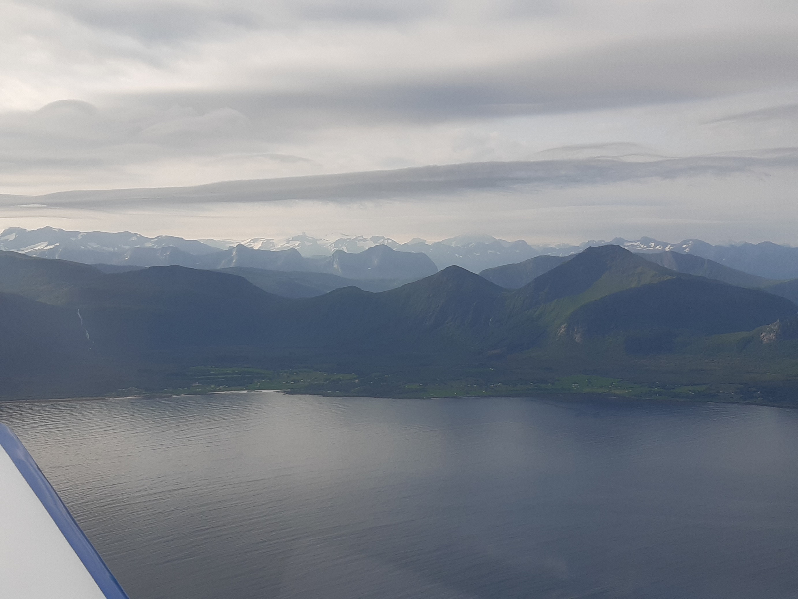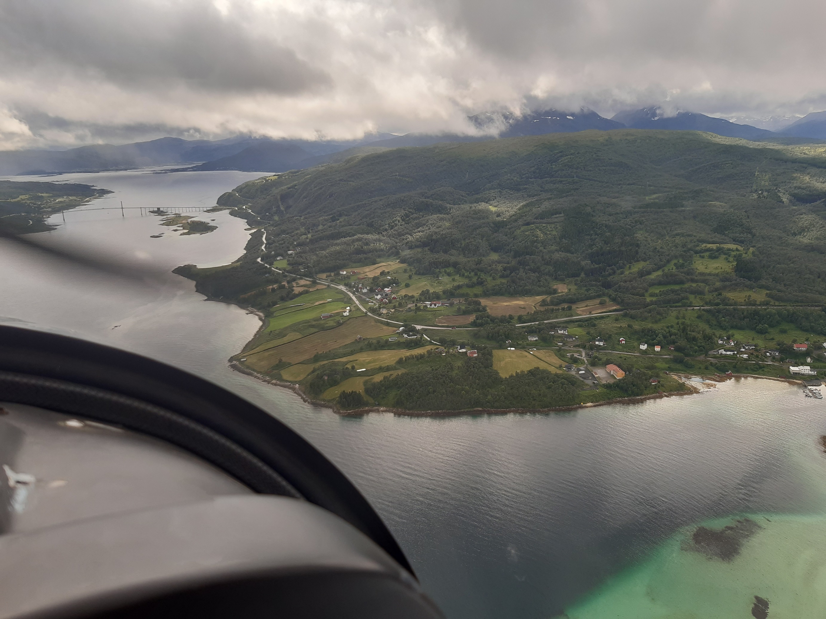We then departed again, this time reaching the coast directly through the fjords to then follow the Western coast of the Lofoten islands on the way to Brønnøy. That flight was a very complex one. Already getting out of the fjords was difficult with very low ceiling, flying at 500ft, some showers, low visibility… flying with the help of the GPS to ascertain where the other side of the fjord or the next island would appear.