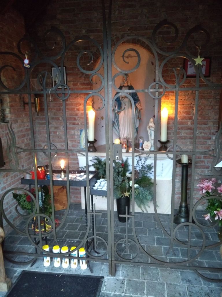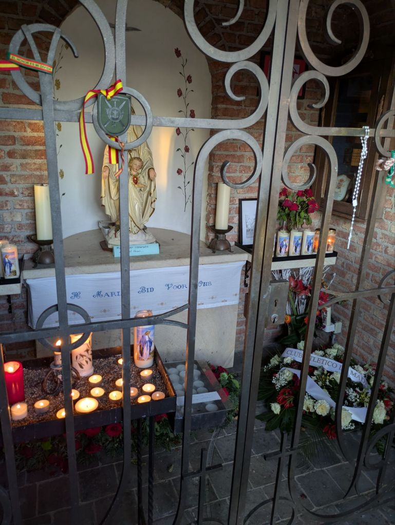 Por último dejo algunas fotos (algunas tomadas hace 7 años y otras de ahora) de cómo es la pequeña capilla, los objetos que hay, y de la vista del río Mosa y la isla Bommel desde Empel. En la capilla hay siempre objetos del ejército español, dado que por decreto de 1892 fue “Declara Patrona del Arma de Infantería a Nuestra Señora la Purísima e Inmaculada Concepción“, y continuamente hay visitas de militares como así se puede ver en el libro de firmas.
