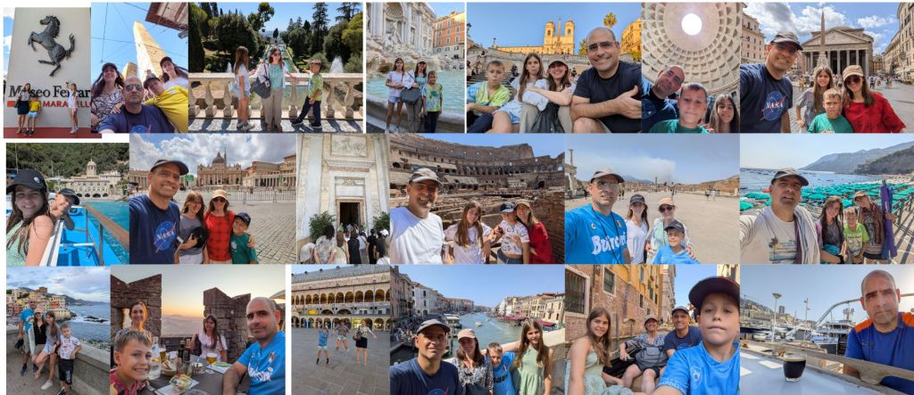 The main experience that we enjoyed together in this 2025 was the road trip we did to Italy during the summer holidays. We spent three weeks driving along the Cote d’Azur, Modena, Bologna, Roma, Orvieto, Assissi, Napoli, Pompei, Sorrento, Aquila, Attri, Loreto, Urbino, San Marino, Ravenna, Venezia, Padova, Verona, Milano… It was a trip full of museums, churches, cathedrals and basilicas (the 2025 jubilee in the Catholic Church and the Jubilee of Youth during our visit brought many young people with their chants and dances, it also enabled us to learn many things), beautiful landscapes, architecture, Roman ruins, bathing in different beaches (including an excursion and sleeping at a boat in the Port Hercule of Monaco), delicious food, lots of sun, a bit of running, and having fun with the kids.
