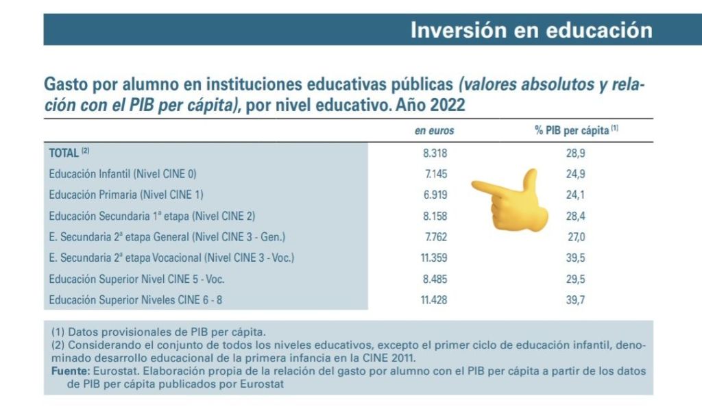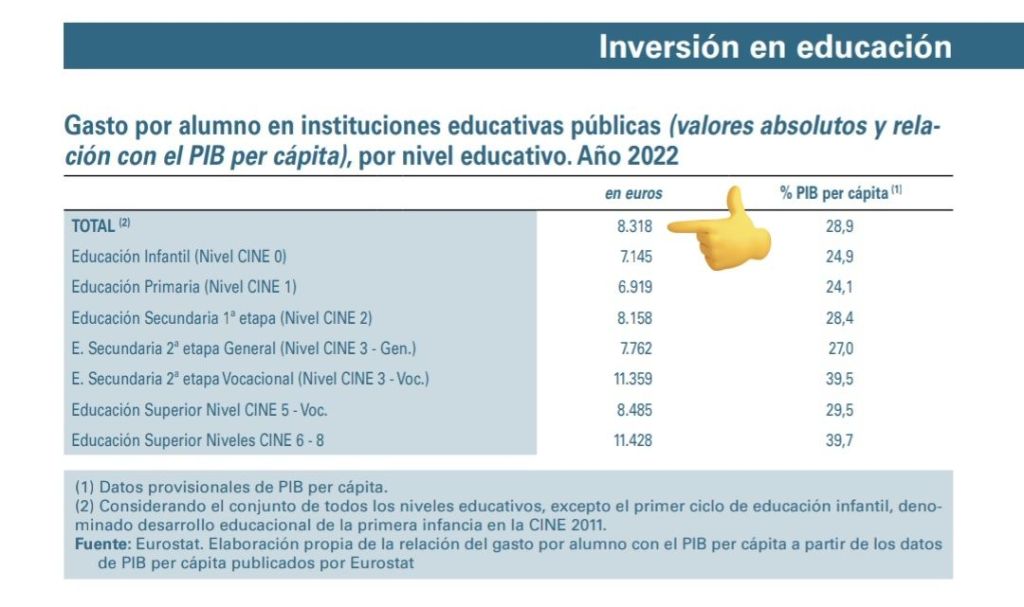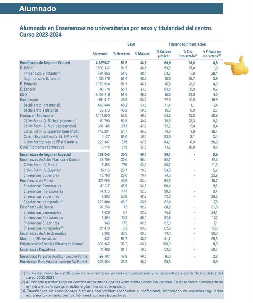 Es decir la administración gasta ~3.800€ por alumno en educación concertada (resultado de dividir los ~7.745m€ en conciertos entre los 2,033 millones de estudiantes en colegios concertados).