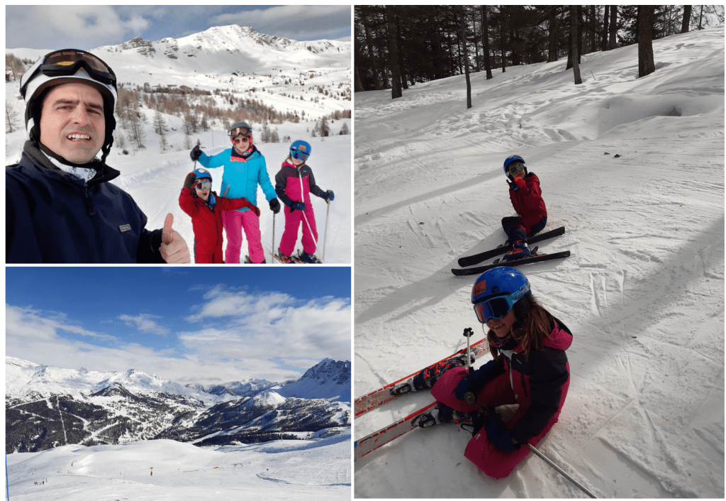 Skiing. In 2024 we went again with the family for a week to our favourite resort at Vars, in the Southern Alps. This year again we could enjoy much time skiing with the kids out of their skiing lessons. They are more daring and at ease especially skiing off tracks, and sometimes it’s difficult to keep pace with them. This year Andrea got her 2ème étoile medal and David his 1ère one (levels from the French ESF).