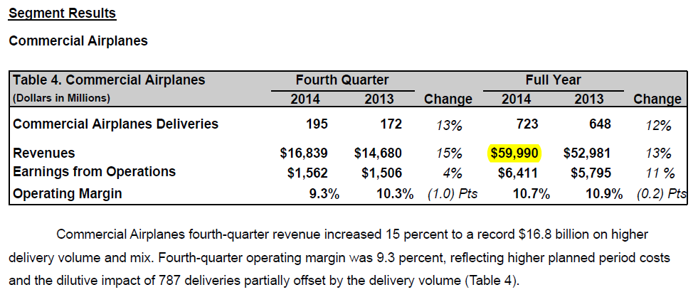 The result, as my intuition went was above the upper limit of the bracket Boeing gave as guidance for the full year in the 2014 Q3 report, 57.5-59.5bn$ (see note (2)).