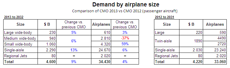 As I do every year, I strongly recommend both documents (GMF and CMO) which provide a wealth of information of market dynamics. This year, Airbus included as well an excel file with its data, find it here [XLS, 0.3 MB]