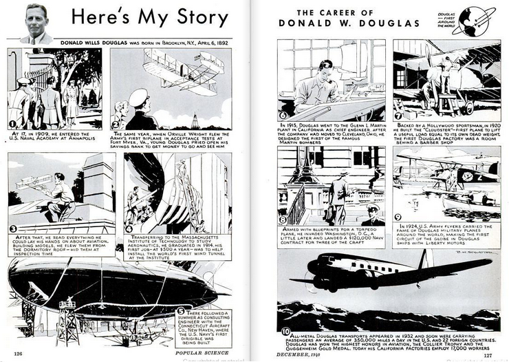 The last picture in the comic-like biography of Douglas above shows a Douglas Commercial DC-3.
