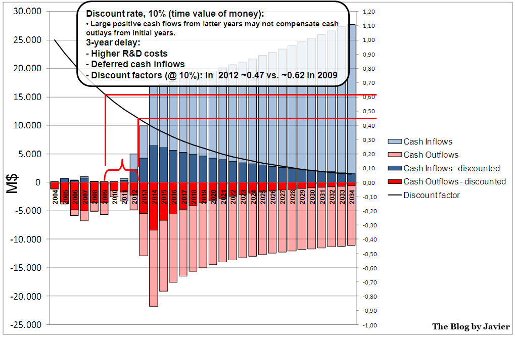 The topic of the speech is known for the reader of this blog: impact of delays in aircraft development projects seen as investment projects, the time value of money, discounting cash flows, break even, etc.