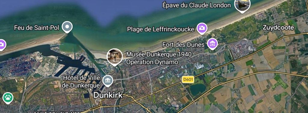 Last October, we visited Dunkirk, the harbor, the beaches, the nearby village Zuydcoote and the museum Musée Dunkerque 1940 – Opération Dynamo. Dunkirk is a town in the North of France, by the North Sea which is 10 km from the border with Belgium, which had been historically affiliated to Flanders or France (for the last 360 years).